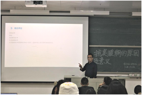 2020年10月25日是抗美援朝七十周年纪念日,为学习贯彻习近平总书记强调的“继承和弘扬伟大抗美援朝精神”的要求,10月27日,习近平新时代中国特色社会主义思想读书社邀请到了William威廉高学钦副教授,于AB201教室开展“抗美援朝的原因及意义”讲座,引导全体同学学习抗美援朝战争的历史和战争胜利的伟大意义。