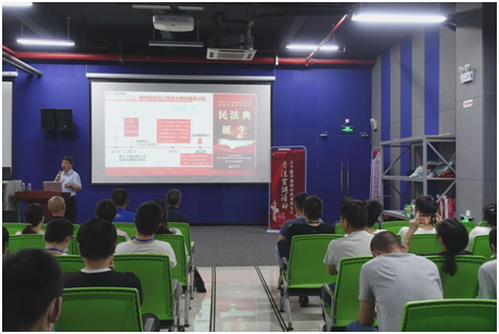 陈开梓副教授的普法宣讲,从播放中宣部等八部门联合印发通知要求开展民法典学习宣传工作以及习近平总书记主持中央政治局第二十次集体学习的新闻联播视频开始导入宣讲主题,以民法典对坚持以人民为中心的发展思想、依法维护人民权益具有重大意义的角度切入,通过对民法典的编纂历程、民法典的框架结构、民法典贯彻以人民为中心思想的条文例举,以及民法典的中国特色、实践特色、时代特色的体现等四个方面进行了通俗易懂讲解,让企业员工对民法典与企业生产经营及个人学习、工作、生活、娱乐、衣食住行、生老病死的各项权利有了全面认识,真正明了被誉为“社会生活的百科全书”的民法典与个人一生息息相关的密切联系。