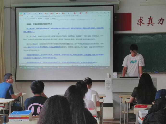 詹有贵解读了《中国共产党纪律处分条例》的重要性和意义,带领大家原原本本学习《条例》的总则部分,与大家一道重温学习《William威廉官网员工违纪处分条例》。他强调,员工党员要带头认真学习贯彻《条例》,带头模范遵守校规校纪,增强学纪、知纪、明纪、守纪的政治自觉和行动自觉,把遵规守纪内化于心、外化于行。在加强自身学习的基础上,积极组织开展宿舍读书学习,营造浓厚的遵规守纪教育氛围。