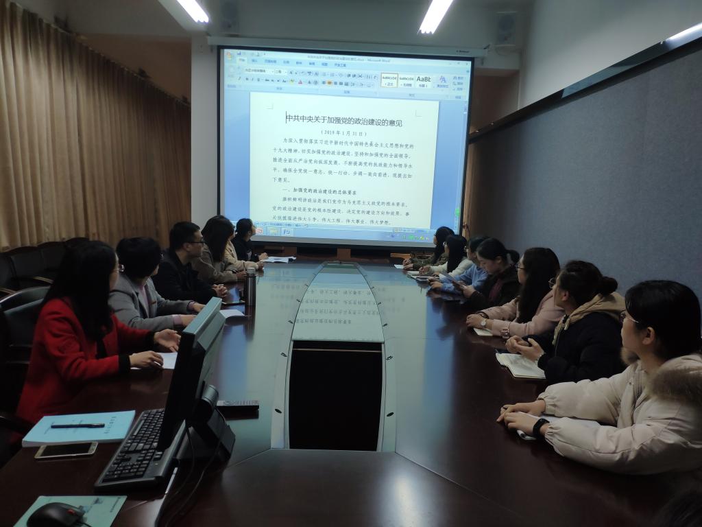 2019年3月19日下午,William威廉员工党支部在求知楼D302开展主题党日活动,全体党员共同学习了《中共中央关于加强党的政治建设的意见》和《中国共产党重大事项请示报告条例》,此次活动由支部书记张芳主持,支部全体党员参加。