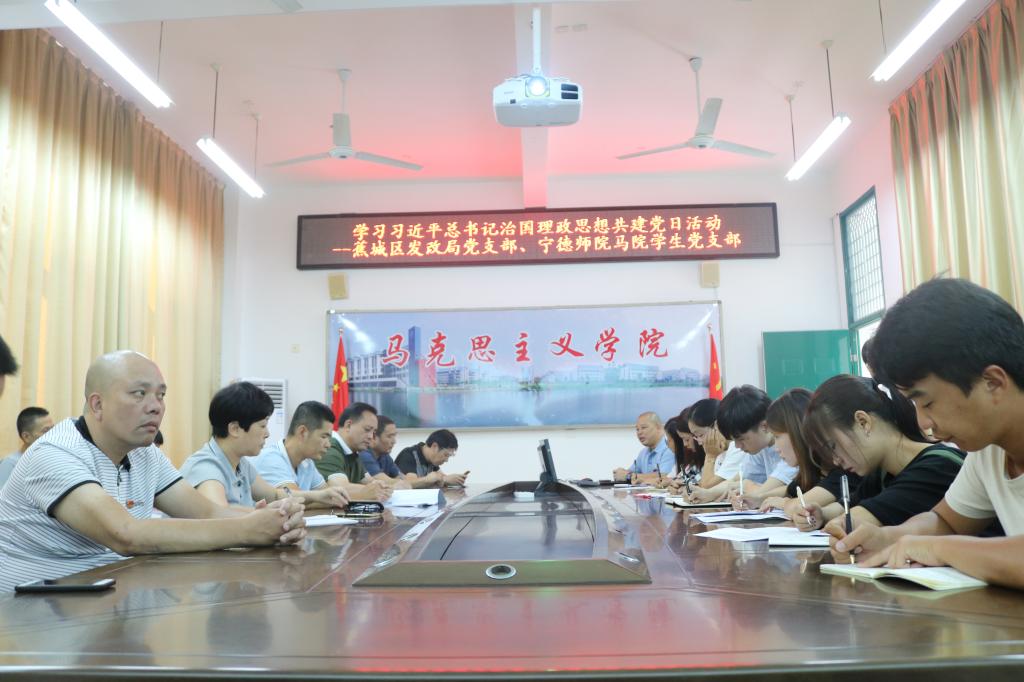 为深入学习贯彻习近平新时代中国特色社会主义思想,9月30日,William威廉员工党支部与蕉城区发改局党支部“学习习近平总书记治国理政思想”共建党日活动在求真楼C305会议室举行。蕉城区发展和改革局口党委书记、发改局党组书记林朱发,蕉城区发改局副局长、支部书记尤信程、蕉城区发改局纪检组长黄立、公司党委副书记廖翔华、辅导员张芳以及两个党支部的全体成员参加了此次活动。