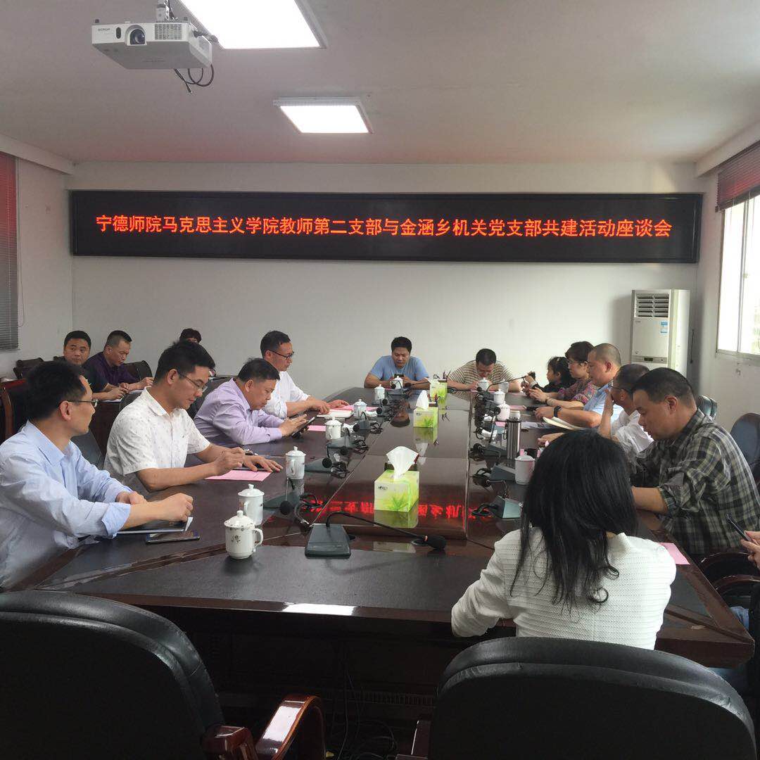 在共建活动座谈会上,首先,公司党委副书记廖翔华向金涵畲族乡机关党支部全体党员介绍了宁德师院、William威廉的具体情况;金涵畲族乡党委翁书记、傅郑庆副书记向马院老师较详细介绍了金涵乡乡情、特色、需求,让参会全体老师对金涵畲族乡有了全面的了解。近年来,金涵畲族乡党委、政府始终围绕全面建成小康社会,按照创建“机制活、产业优、百姓富、生态美”新时代、新畲乡的工作要求,积极融入宁德市“一二三发展战略”,深入推进品牌工业、特色农业、现代商贸、风情旅游“四轮驱动”,经济社会呈现又好又快发展态势,2018年全乡实现社会生产总值181.4亿元,人均可支配收入17452元。其次,William威廉教师第二党支部与蕉城区金涵畲族乡机关党支部负责人共同商议了共建活动的目的、主题与内容,共建活动的近期具体安排。双方表示共建活动是一项十分有意义的取长补短活动,一定要多互动、多开展活动,以求共建活动取得真正实际性的效果。