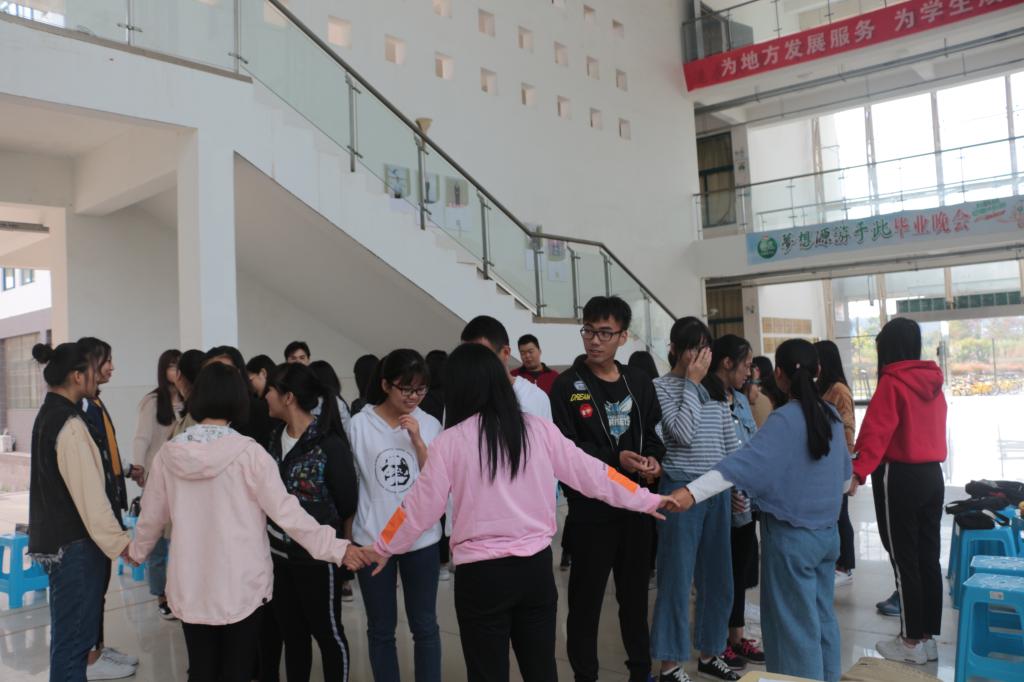 在整个活动过程中,所有同学以小组为单位展开各项活动。破冰环节大家互相认识家乡,由两人到四人接着是六人的坐地起身环节让同学们彼此依赖信任,达尔文密码环节小组争雄,穿越生死线更是十分惊险。利用中午休息时间,各小组争分夺秒赶制队伍海报,制定出队名、队歌、队标及口号,并在随后的队伍展示环节中将自己的心血与大家分享。“速度与激情”看图片猜数字的游戏,更是让同学们兴奋不已,游戏考验的不仅是观察能力,更是速度与激情的较量。