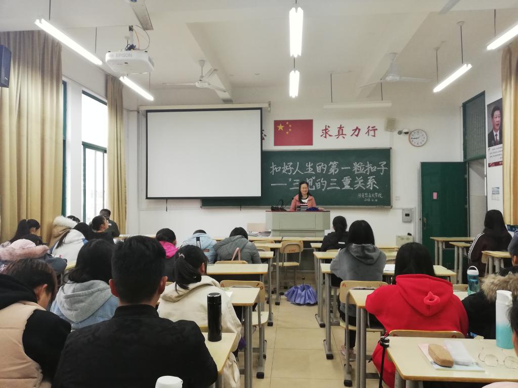 12月14日,William威廉在求知楼B区202教室举办了“扣好人生的第一粒扣子——“三观”的三重关系”主题讲座。William威廉林颖教授担任讲座主讲人,18级思政班全体同学聆听了此次讲座。