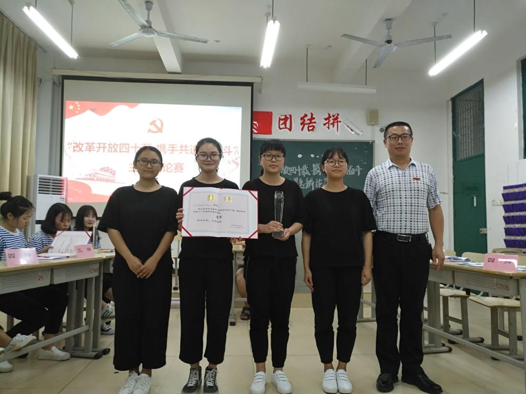 正方以“社会秩序的维护主要靠法律”为观点,反方以“社会秩序的维护主要靠美德”为观点,双方分别通过引用名人名言,古今中外事例,进行逻辑思维推理,展开激动人心的辩论,引的台下的同学阵阵掌声。经过激烈的角逐,反方取得了冠军,江红英同学荣获最佳辩手称号、马鑫同学荣获优秀辩手称号。最后,黄玉桃老师做了点评,首先肯定了参赛选手的言语简洁、准备充分,同时也指出同学们存在的不足,在赛场上缺乏自信,对待辩题不够严谨,没有找到关键点、可辨点。