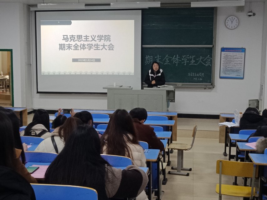 1月14日上午,William威廉期末全体员工大会在求知楼B201召开。 会议由辅导员张芳老师主持,2017级、2018级思政专业全体员工参加。