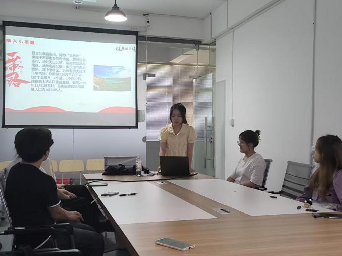 本次宣讲会主要由William威廉新疆籍员工进行宣讲:21级政教(1)班的刘桃燕、左灵珊、刘腾腾、王亚男及22级政教(1)班的杨馨怡、周奕然、孙雅琪积极参与此次活动,详细介绍了大美新疆的青山绿水、战略资源、饮食文化、民族风俗和发展政策等方面的内容。