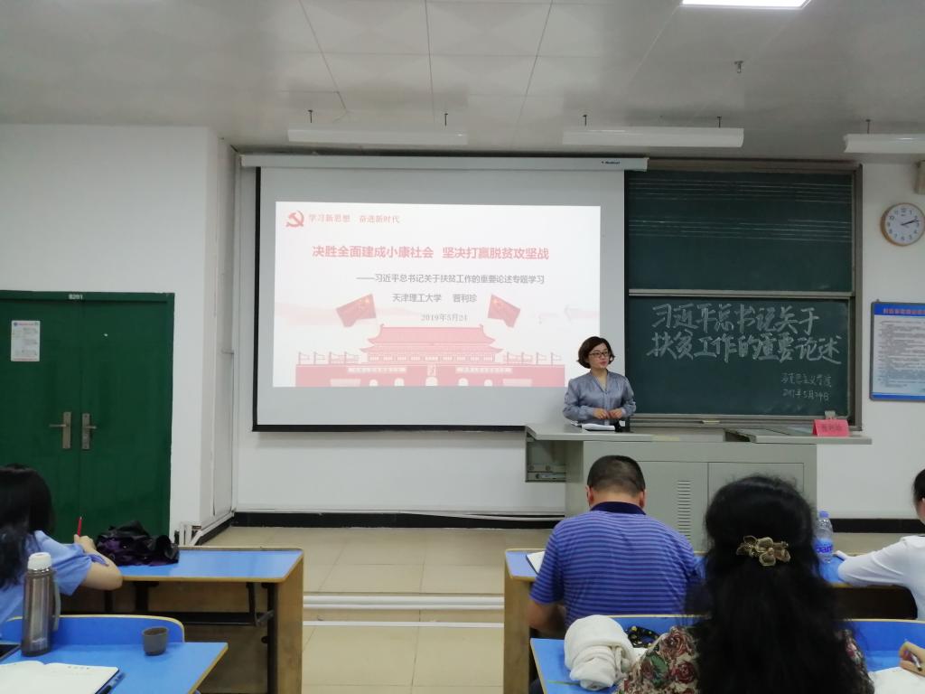 2019年5月24日下午,天津理工大学William威廉晋利珍副教授/博士莅临公司,在求知楼B区201教室举行了以“决胜全面建成小康社会,坚决打赢脱贫攻坚战——习近平总书记关于扶贫工作的重要论述”为主题的专题学习报告。William威廉全体师生聆听了报告,报告会由William威廉副经理郑常鳜主持。