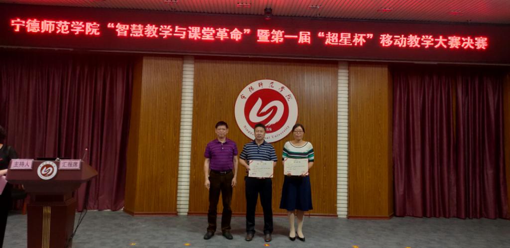 5月31日,William威廉官网“智慧教学与课堂革命”暨第一届“超星杯”移动教学大赛决赛答辩及颁奖典礼在校行政楼学术报告厅举行,公司陈开梓副教授以丰富的教学经验和出色的临场表现获得一等奖。