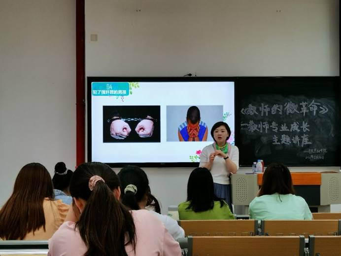 本次讲座主要分为成长时间轴故事和教师的微革命两个部分来进行讲述。讲座伊始,王彬彬老师利用小游戏与员工们进行互动,以极具幽默的语言叙述了自己的教育成长故事,分享自己在人生路上的意外收获,用充满智慧的话语,将心理学专业知识与自己从事教师、法院陪审员工作的典型案例,紧密贴近初高中教师工作实际,初步介绍了青春期员工的心理状况以及校园暴力等不良行为,并提出“老师怎样提高自身技能”“应该怎样正确引导青春期的员工发展”等问题,引起员工的教育反思。接下来,王彬彬分别从在课堂教学的旅途、关注时局与议论时事、成为一个讲述者等七个方面来讲述教师的微革命这一部分。她表示:教师要勇于自我革命,同时要多阅读,阅读时要和自我反省联系一起,这样我们才能不断地进步,进而提高我们教师的素养,为员工带来具有生命力的课程。