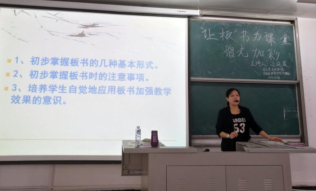 通过此次讲座不仅让同学们了解到如何才能让自己的板书成为课堂的亮点,同时也为同学们今后的从教之路做了有效铺垫。