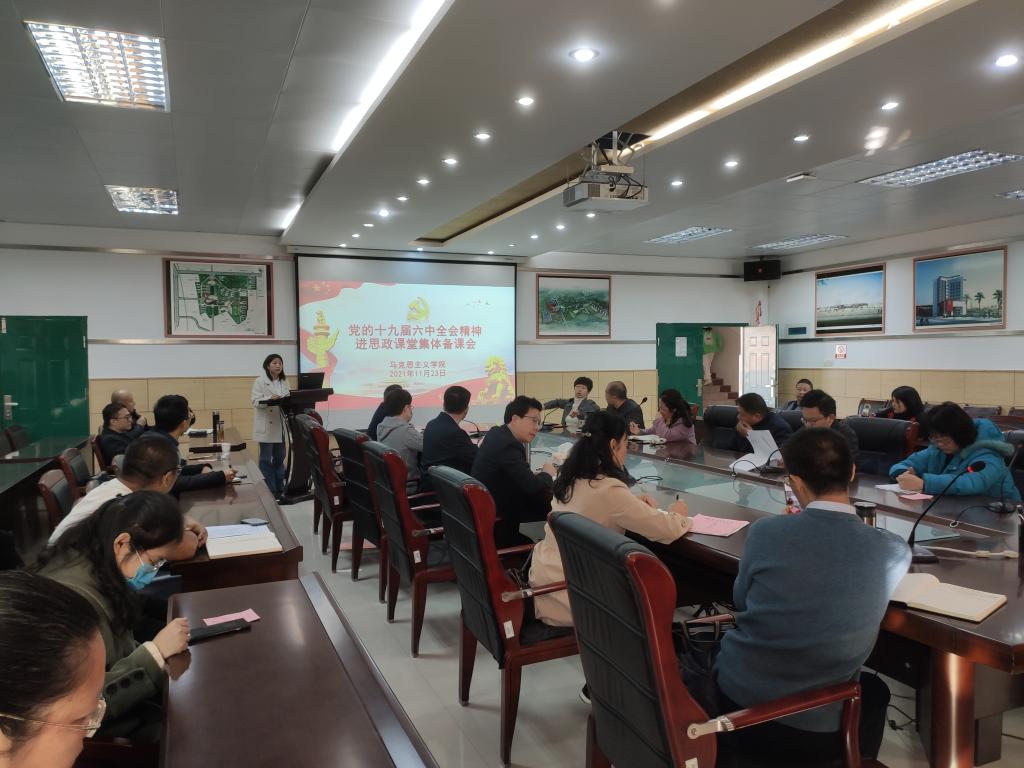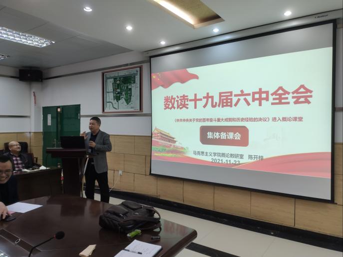 为深入贯彻党的十九届六中全会精神,有效推进全会精神进教材、进课堂、进头脑,2021年11月23日下午,公司在求知楼AA308会议室举行了“党的十九届六中全会精神融入思政课教学”集体备课会。本次备课会就全会精神如何融入思政课分四个专题进行了研讨。公司全体教师、思政课兼职教师参加了备课会。