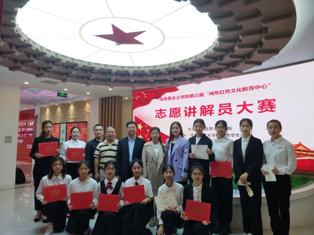 在大赛公平公正、优中选优的原则下,林靖婷荣获此次大赛冠军,孙靓、孙杰娜、赵真真荣获二等奖,张潇潇、朱伯芸、许婕妤、林之韵荣获三等奖,王志兰、陈周玲、林嘉祺、胡梦宇荣获优秀奖。“这次大赛是一次很好的锻炼机会,让我更加深入了解闽东红色文化,在以后的锻炼实践中,我会努力成为一名合格的红馆讲解员,继承闽东红色文化,弘扬“闽东之光”,让更多人了解闽东红色故事。”20级思想政治教育班的林靖婷说道。