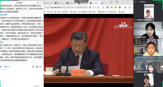 2020级材料化学专业的翟梦昕有感而发:“习近平总书记在庆祝中国共产主义青年团大会上的讲话,让我认识到青年人有理想,国家就有希望,民族就有力量,这是实现中华民族伟大复兴的源源不断的强大力量。作为一名青年团员,我们要紧跟党的步伐,听团的指挥,从身边的小事做起,不断地进步,成为一个可以独当一面,给人民带来幸福,为国家做出贡献的有志青年。”