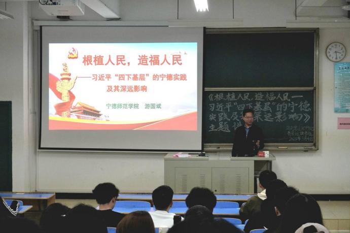 游国斌教授从“饱含真挚深厚的人民立场与人民情怀”、“蕴含求真务实的领导作风与工作方法”、“彰显历久弥新的实践伟力与时代价值”三方面展开,通过一个个真实动人的感人故事,一段段至善至真的场景,带领学员们领悟习近平总书记首创的“四下基层”工作理念和工作方法,深入学习习近平总书记在宁德工作期间所作出的一系列极具前瞻性、开创性、战略性的理念创新和实践探索。游国斌教授强调,广大学员要铸牢忠诚之魂、时刻紧紧关注国家时事热点,牢记殷切嘱托,学习习近平总书记在宁德工作期间的创新思想,为谱写全面建设社会主义现代化国家的福建篇章贡献宁师学子力量。